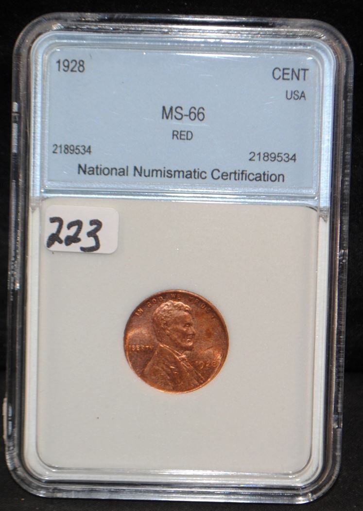 1928 LINCOLN CENT - NNC MS66 RED (THE CURRENT PCGS PRICE GUIDE LISTS AN MS66 RED @ $450.00)
