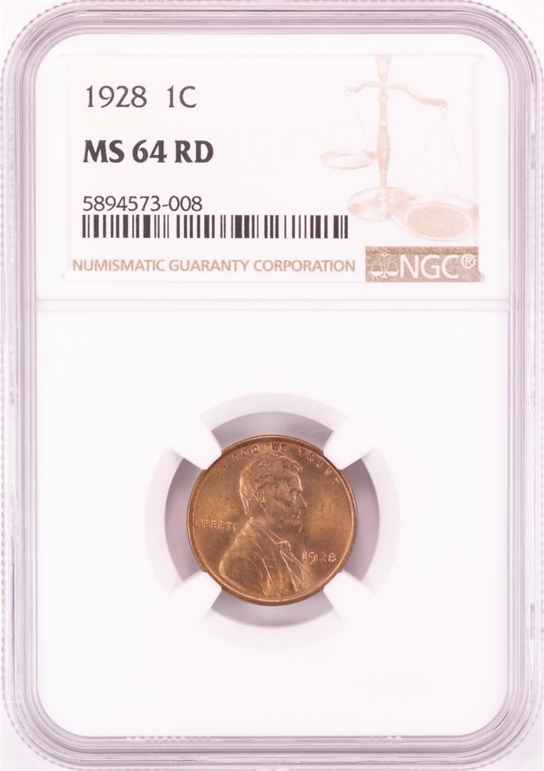One 1928 Lincoln Wheat Cent Coin NGC MS64RD. NGC Certified.