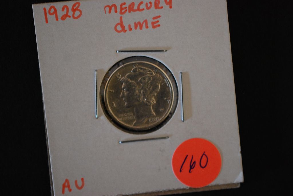 1928 Mercury Dime; AU; EST. $10-15