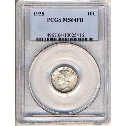 <b>1928 Mercury Dime. PCGS graded MS64 FB.</b> Fresh frosty luster with bold detail on the cross bands <b>(PCGS # 4967)</b> <i>