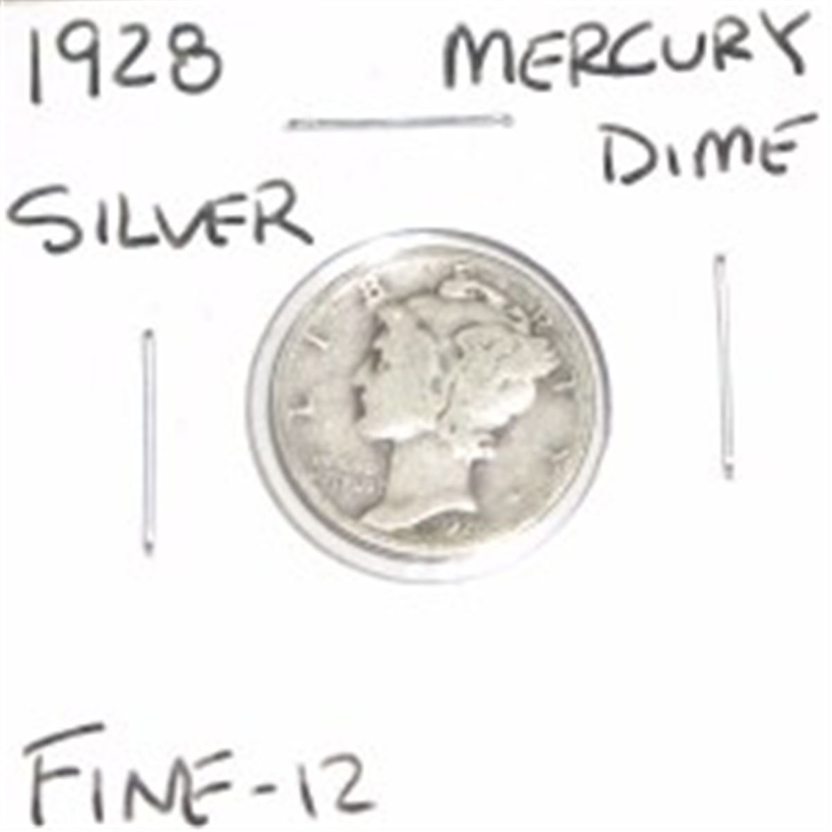1928 Mercury Silver Dime *FINE-12 GRADE - NICE COIN*!!