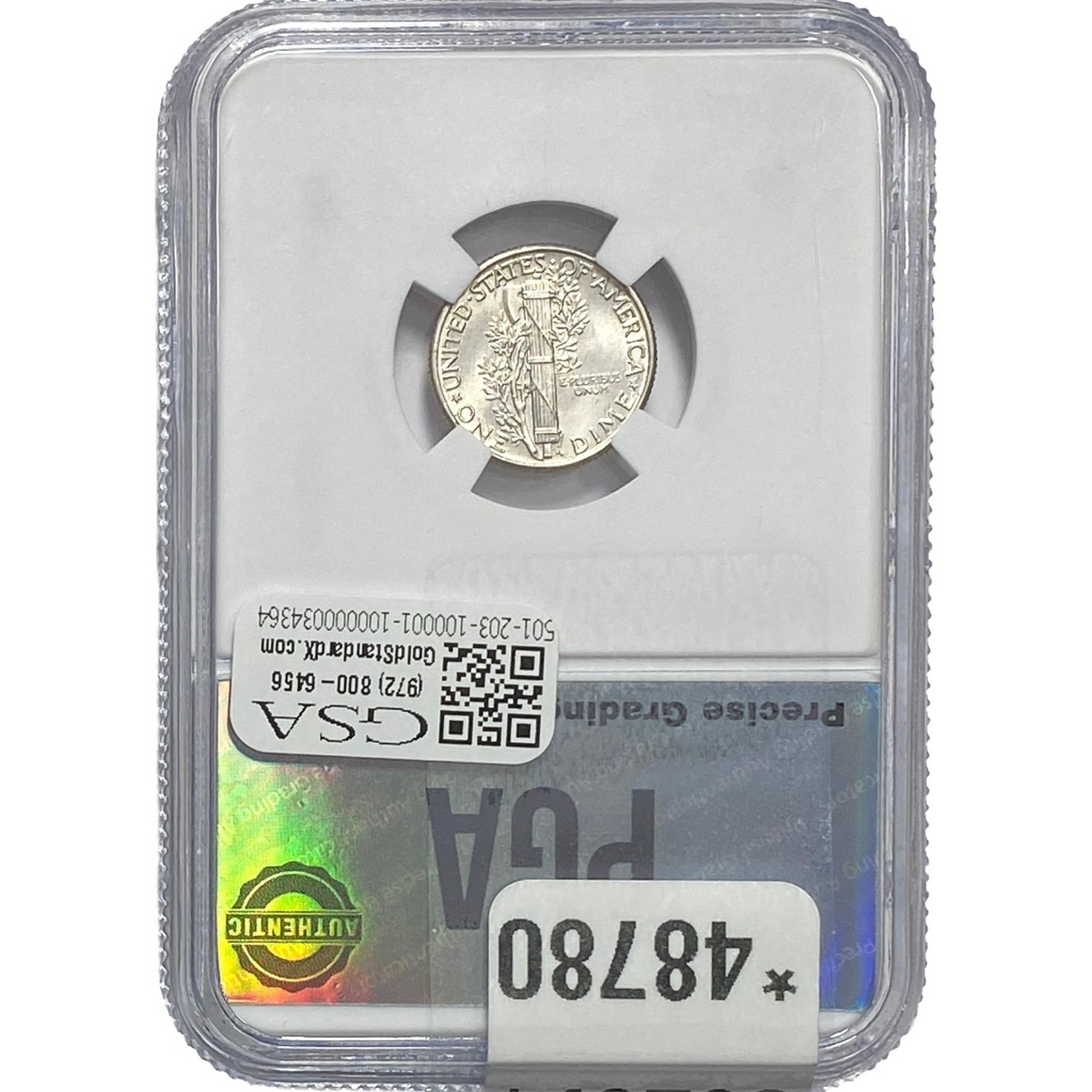 COINS AND CURRENCY LISTED IN GSA’S CATALOG AS GRADED AND ENCAPSULATED BY PCGS, NGC, ANACS, ICG, PCGS CURRENCY, PMG, PCGS BANKNOTE GRADING, CMC OR ANY OTHER THIRD-PARTY GRADING SERVICE ARE LIKEWISE SOLD “AS-IS” EXCEPT AS EXPRESSLY SET FORTH HEREIN. ALL THIRD-PARTY GRADING SERVICE GUARANTEES, INCLUDING AUTHENTICITY, ARE THE SOLE RESPONSIBILITY OF THE THIRD-PARTY GRADING SERVICE AND NOT WARRANTIES OR GUARANTEES OF GSA. BIDDERS SHOULD CONTACT THESE THIRD-PARTY GRADING SERVICES DIRECTLY WITH RESPECT TO ANY CLAIMS OR QUESTIONS THEY MAY HAVE CONCERNING THEIR GUARANTEES AND WARRANTIES. BIDDERS ACKNOWLEDGE AND AGREE THAT AUCTIONEER IS NOT BOUND BY OR LIABLE FOR ANY OPINION OR CERTIFICATION BY ANY THIRD-PARTY GRADING SERVICE. REMOVAL OF A PRODUCT FROM ITS PROTECTIVE CASING OR HOLDER OR ALTERATION OF ANY COIN HOLDER WAIVES ALL RIGHTS CONCERNING THE PRODUCT CONTAINED THEREIN.