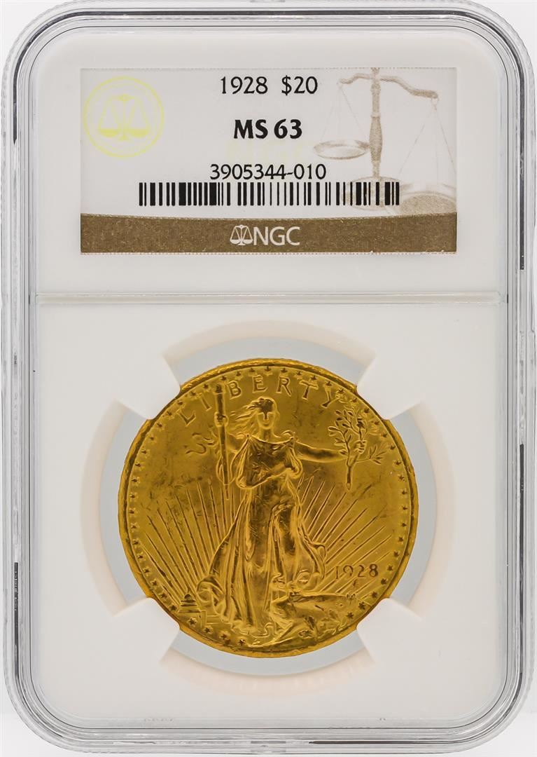 One 1928 NGC MS63 $20 St. Gaudens Double Eagle Gold Coin. NGC Certified.