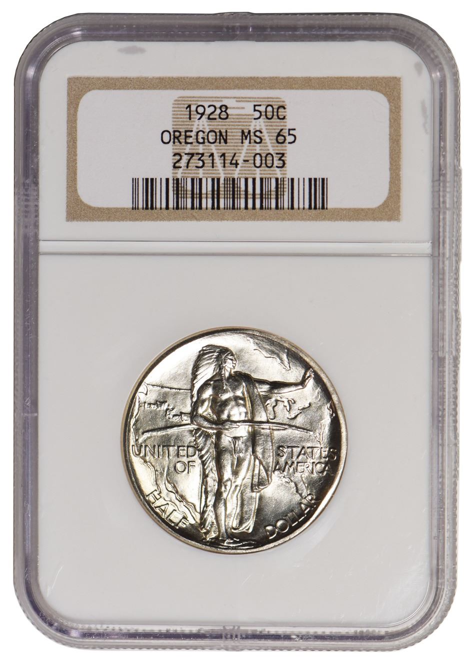 One 1928 Oregon Trail Commemorative Half Dollar NGC MS65.