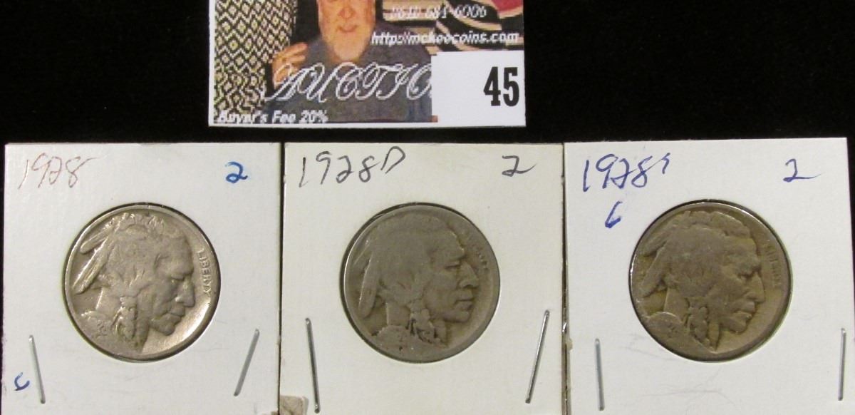 1928 P, D, & S Buffalo Nickels. G-VG.