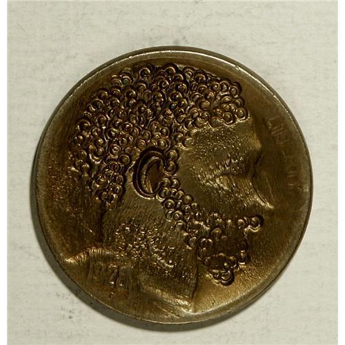 <B>1928-P:</B></I> This is most assuredly a post-1957 original by "Bo." The ski nose, "C" punch used for the ear and "tobacco pouch" coloring attest to the originality of this offering. This is an especially interesting piece in that it appears to portray an African-American subject, something that rarely is seen on these coins. The entire (Good) coin has also been etched in some manner to give it a rough surface which is rather attractive to this cataloger (BF). High Average, primarily because of the subject.<BR><BR><b>Shipping:</b> Coin/Currency (<a target="_blank" href="http://www.heritageauctions.com/common/shipping.php">view shipping information</a>)