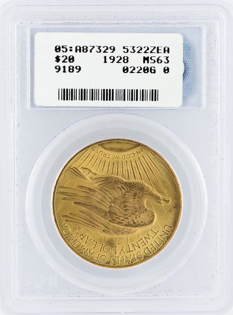 One 1928 PCGS MS63 $20 St. Gaudens Double Eagle Coin. PCGS Certified.