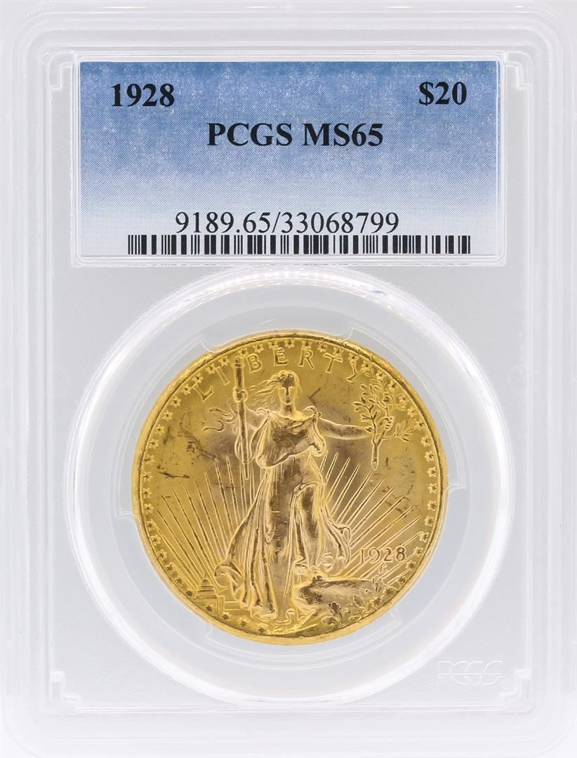 One 1928 PCGS MS65 $20 St. Gaudens Double Eagle Gold Coin. PCGS Certified.