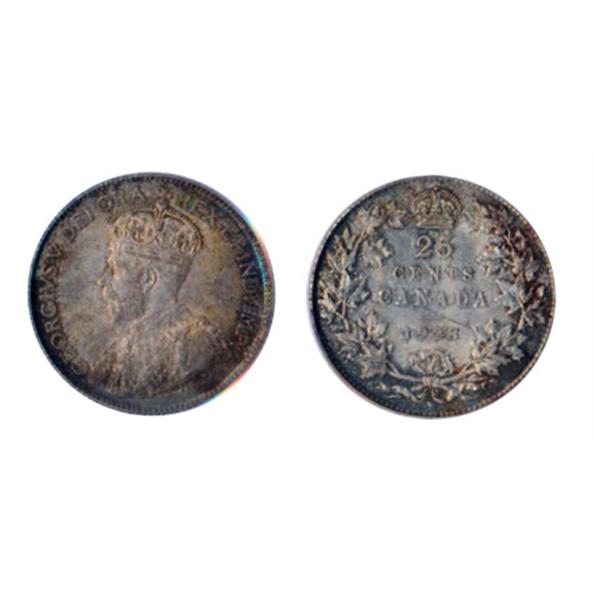 1928. PCGS graded Mint State-65. Medium heavy iridescent toning.