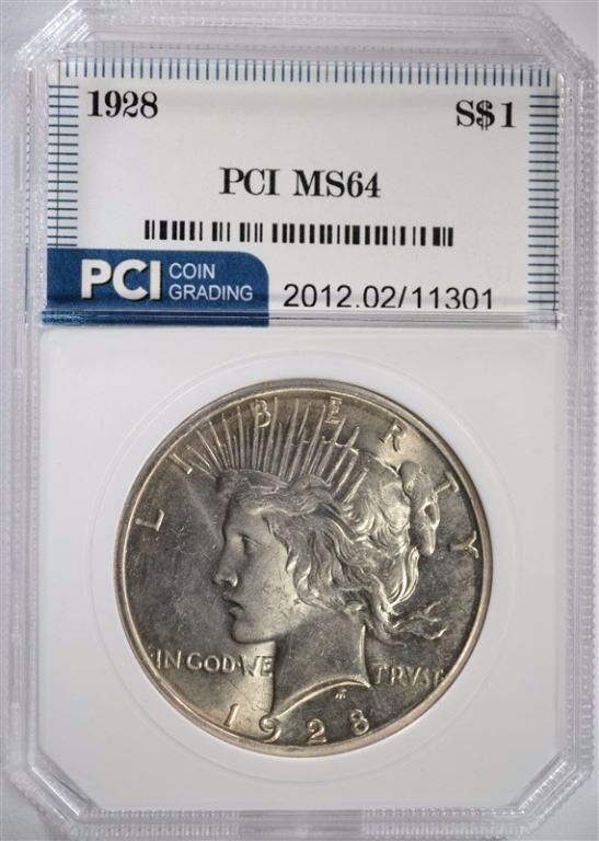 1928 PEACE DOLLAR, PCI CH/GEM BU ESTIMATE $900 - $1000.