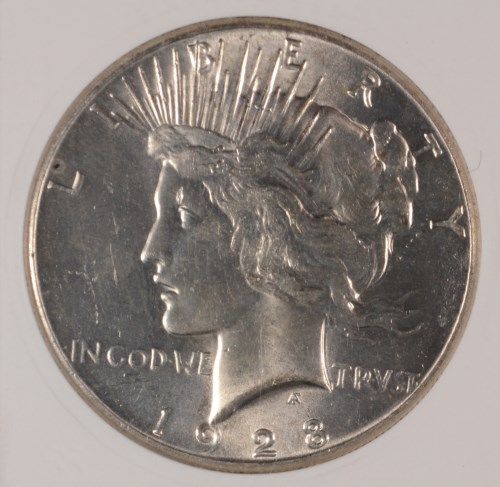 1928 PEACE SILVER DOLLAR, ANACS MS-63 BLAST WHITE, LOOKS MS-64+ NO MARKS