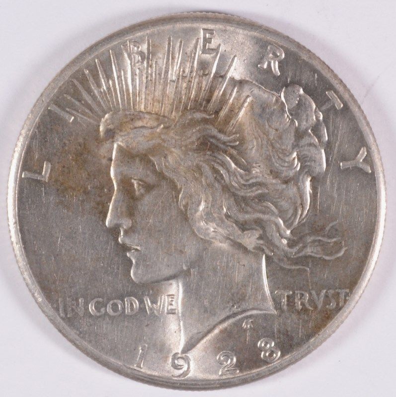 1928 PEACE SILVER DOLLAR, MS-64 WHITE, BLAZING LUSTRE! KEY COIN!