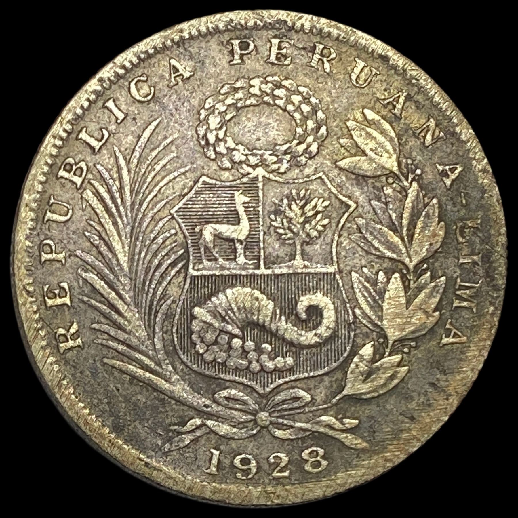 1928 Peru Silver 1/2 Sol