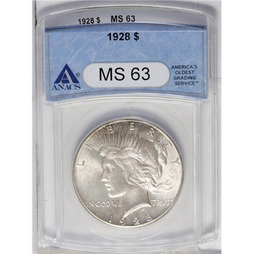 1928 S$1 MS63 ANACS. Select and highly lustrous, this