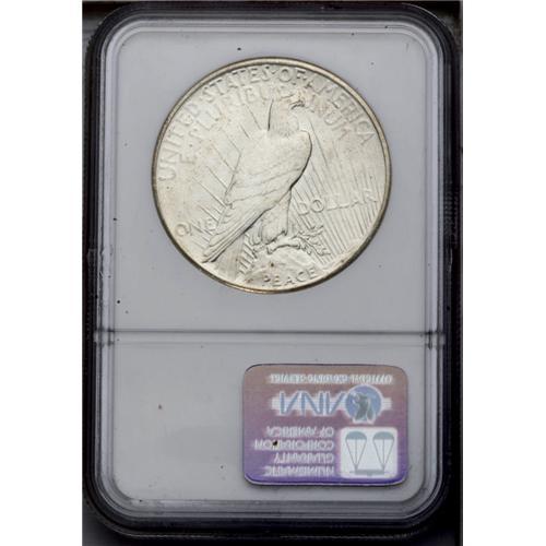 <B>1928<img border='0' src='http://www.heritagecoins.com/images/star.gif' width=10 height=10>$1> MS63 NGC.</B></I> Lightly abraded over lustrous silver surfaces. A vertical mark on the cheek prevents a higher grade. Just 360,649 examples of this issue were minted. <BR><BR><B>Important notice:</B> Heritage usually auctions material at the rate of 200-250 lots per hour. On some occasions eBay Live bid software or the Internet may not be able to keep up with the pace of the auction. We recommend placing a realistic absentee bid now as insurance to avoid disappointment. Occasionally the auctioneer may eliminate or reject an eBay Live bid, and the auctioneer may also reopen a lot after the close of the eBay live bidding (usually because we missed an audience bid), and may reject your bid even if it shows you as the winning bidder. By bidding via eBay Live, you agree that Heritage may award the lot to another bidder at its sole discretion under the circumstances described above or any other reasonable circumstances. Since eBay bids are not shown to us until we open the lot on the floor, we treat those bids just like floor bids. In most cases the floor responds before the eBay bid is presented to us, due to Internet lag time, so for consistency we have made it a policy that floor bids are always considered first over tie eBay live bids. Also please note that all Heritage lots purchased through eBay Live carry a 20% Buyer's Premium. Please make sure you read the Terms and Conditions before you bid. This lot is being auctioned in conjunction with a live floor auction by Heritage Galleries & Auctioneers. All final auction and invoice information will be supplied by Heritage Galleries & Auctioneers, and all other information should be considered preliminary. Lot:3861 <BR><BR><B>Winning Notification and Billing:</B> After the FINAL session in this auction is complete, Heritage will send e-mail and snail mail invoices. This process normally takes several days. All final auction and invoice information will be supplied by Heritage Galleries & Auctioneers, and all other information should be considered preliminary. <BR><BR>This auction will be conducted on a live auction floor and over the Internet through eBay Live. If you choose to place an absentee bid, please take a moment to <font color='#0000ff'><u><a href='http://pages.ebay.com/liveauctions/help/before/laabsentee.html'>learn how eBay Live absentee bidding works</a></u></font><font color='#000000'>