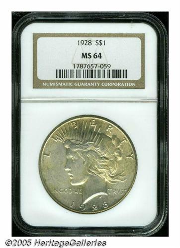 1928 S$1 MS64 NGC. The low mintage of only 360,64