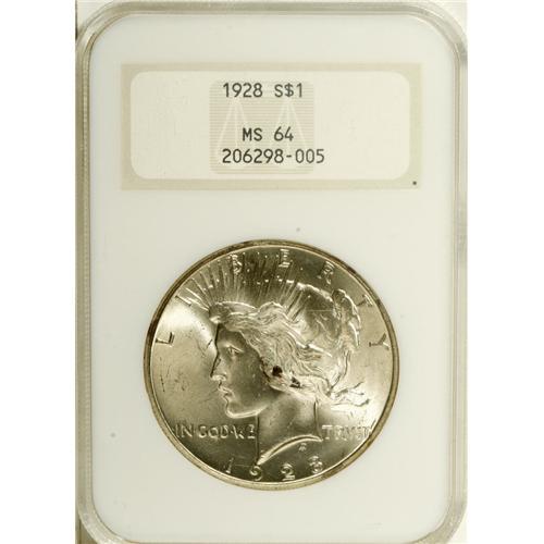 1928 S$1 MS64 NGC. This lustrous and crisply struck ke