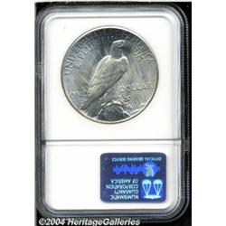 <B>1928<S$1> MS64 NGC.</B></I> There's luster to spare on this extremely bright and shiny Peace dollar. Some minor abrasions are noted on the fields and on Liberty's cheek which serves to limit the grade, but the brilliant and virtually untoned surfaces absolutely sparkle. <BR><BR><B>Important notice:</B> Heritage usually auctions material at the rate of 200-250 lots per hour. On some occasions eBay Live bid software or the Internet may not be able to keep up with the pace of the auction. We recommend placing a realistic absentee bid now as insurance to avoid disappointment. Occasionally the auctioneer may eliminate or reject an eBay Live bid, and the auctioneer may also reopen a lot after the close of the eBay live bidding (usually because we missed an audience bid), and may reject your bid even if it shows you as the winning bidder. By bidding via eBay Live, you agree that Heritage may award the lot to another bidder at its sole discretion under the circumstances described above or any other reasonable circumstances. Since eBay bids are not shown to us until we open the lot on the floor, we treat those bids just like floor bids. In most cases the floor responds before the eBay bid is presented to us, due to Internet lag time, so for consistency we have made it a policy that floor bids are always considered first over tie eBay live bids. Also please note that all Heritage lots purchased through eBay Live carry a 20% Buyer's Premium. Please make sure you read the Terms and Conditions before you bid. </span></font></tr></table></td></tr></table>