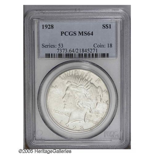 1928 S$1 MS64 PCGS.From The Andy Geosits Collection of 1928[S$1] MS64 PCGS.
