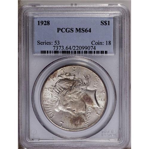 1928 S$1 MS64 PCGS. This near-Gem sports deep dappled 1928[img border='0' src='http://www.heritageco
