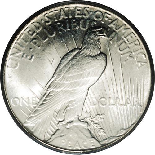 <B>1928<img border='0' src='http://www.heritagecoins.com/images/star.gif' width=10 height=10>$1> MS65 PCGS.</B></I> The 1928 has the lowest mintage of any Peace dollar with only 360,649 pieces produced. As a result, it is difficult (and pricey) to locate in circulated grades also. Gems are quite rare, not only because of the absolute scarcity of the issue but also because of the softness of strike which keeps many otherwise nice coins from Gem status. This is a well defined piece that is sharp even on the eagle's wing with all feathers present. Each side presents a snow-white, completely untoned appearance.<BR><I>From The Robert Moreno Registry Collection of Peace Dollars.</B></I>