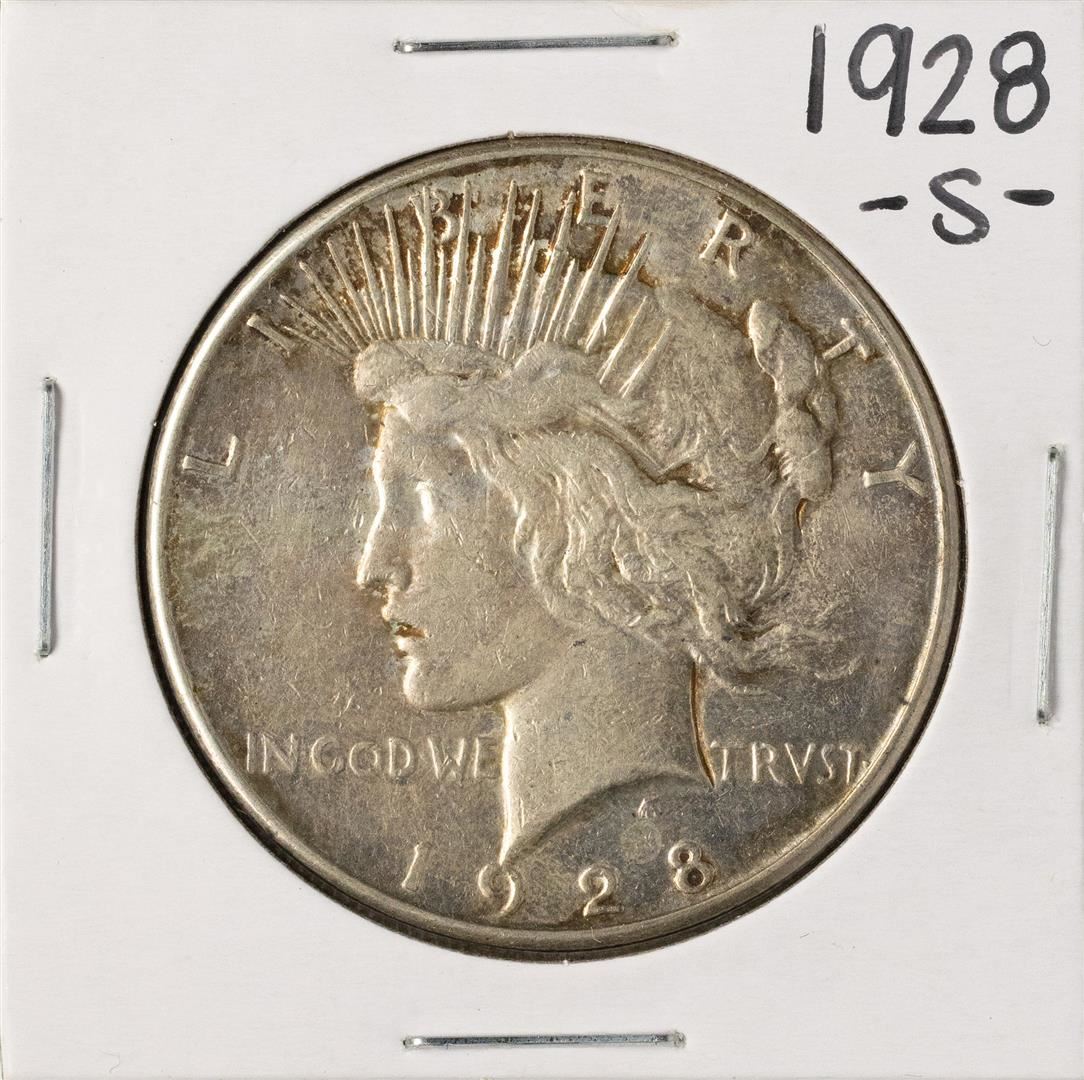 One 1928-S $1 Peace Silver Dollar Coin.
