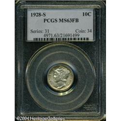 1928-S 10C MS63 Full Bands PCGS. Light peripheral <B>1928-S 10C MS63 Full Bands PCGS.</B></I> Light peripheral golden-brown and mauve color frame the untoned devices. A satiny and refreshingly unabraded example of this scarce low mintage issue. <BR><BR><B>Important notice:</B> Heritage usually auctions material at the rate of 200-250 lots per hour. On some occasions eBay Live bid software or the Internet may not be able to keep up with the pace of the auction. We recommend placing a realistic absentee bid now as insurance to avoid disappointment. Occasionally the auctioneer may eliminate or reject an eBay Live bid, and the auctioneer may also reopen a lot after the close of the eBay live bidding (usually because we missed an audience bid), and may reject your bid even if it shows you as the winning bidder. By bidding via eBay Live, you agree that Heritage may award the lot to another bidder at its sole discretion under the circumstances described above or any other reasonable circumstances. Since eBay bids are not shown to us until we open the lot on the floor, we treat those bids just like floor bids. In most cases the floor responds before the eBay bid is presented to us, due to Internet lag time, so for consistency we have made it a policy that floor bids are always considered first over tie eBay live bids. Also please note that all Heritage lots purchased through eBay Live carry a 20% Buyer's Premium. Please make sure you read the Terms and Conditions before you bid. This lot is being auctioned in conjunction with a live floor auction by Heritage Galleries & Auctioneers. All final auction and invoice information will be supplied by Heritage Galleries & Auctioneers, and all other information should be considered preliminary. Lot:5816