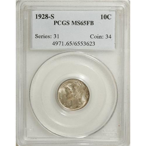 1928-S 10C MS65 Full Bands PCGS. Large S. Though Small