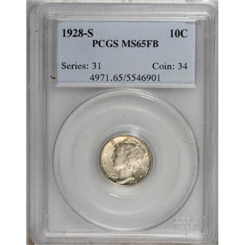 <B>1928-S 10C MS65 Full Bands PCGS.</B></I> Large Mintmark. Despite a mintage of 7.4 million pieces, Full Bands Gem examples of this Roaring Twenties S-mint issue remain elusive. The shining surfaces of the present piece offer an appealing blend of silver-gray and champagne patina. Boldly impressed and carefully preserved.<BR><BR><B>Coin Engraver:</B> Adolph A. Weinman<BR><BR><b>Shipping:</b> Coins & Currency (<a target="_blank" href="http://www.heritageauctions.com/common/shipping.php">view shipping information</a>)
