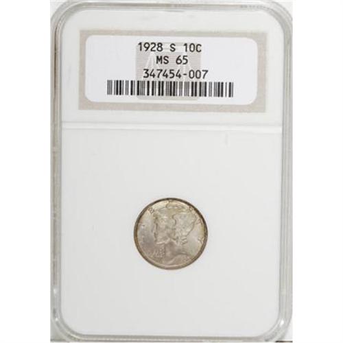 <B>1928-S 10C MS65 NGC.</B></I> NGC Census: (58/41). PCGS Population (46/30). Mintage: 7,400,000. Numismedia Wsl. Price for NGC/PCGS coin in MS65: $332. (#4970)<BR><BR><B>Coin Engraver:</B> Adolph A. Weinman<BR><BR><b>Shipping:</b> Coins & Currency (<a target="_blank" href="http://www.heritageauctions.com/common/shipping.php">view shipping information</a>\)