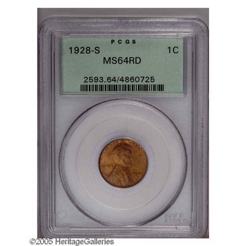 1928-S 1C MS64 Red PCGS. This olive-orange example is 1928-S[1C] MS64 Red PCGS.