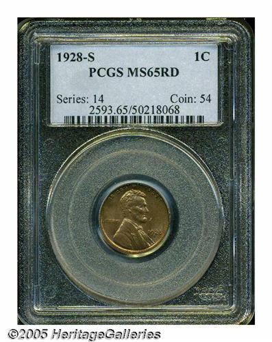 <B>1928-S<1C> MS65 Red PCGS.</B></I> An extraordinary example of this scarce issue, seldom seen any finer. This example is quite sharply struck for the issue, with strong hair details on the obverse, and full wheat details on the reverse. The surfaces are pristine and virtually mark free, and the luster is strong and brilliant, with only slight mellowing. Population: 39 in 65, 5 finer (5/05).