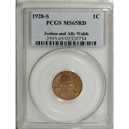 <B>1928-S 1C MS65 Red PCGS.</B></I> Ex: Joshua and Ally Walsh. Sharply defined for this often-overlooked Lincoln cent scarcity from the late 1920s, with even reddish-orange color that is interrupted by a thin arc of gray patina across the obverse. Population: 40 in 65, 5 finer (12/06).<BR><BR><b>Shipping:</b> Coin/Currency (<a target="_blank" href="http://www.heritageauctions.com/common/shipping.php">view shipping information</a>)