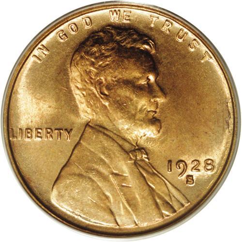 <B>1928-S<1C> MS65 Red PCGS.</B></I> This date is remarkably rare at the finer levels of preservation for a Lincoln cent with a not insignificant original mintage of 17.2 million pieces. One seldom encounters a Gem 1928-S whose surfaces are both fully lustrous and sharply struck, yet this is just such a coin. Rich reddish-orange luster swirls around both sides of this frosty textured example. The color is full, and the surfaces are free of mentionable carbon. Accuracy compels us to mention some minor mottling of color on the reverse from being housed in an old-time album. Population: 40 in 65, 5 finer (3/06).<BR><I>From The Kendall Marie #4 All-Time Finest PCGS Registry of Lincoln Cents with Varieties, Circulation Strikes, 1909-1958.</B></I> <BR><BR><B>Important notice:</B> Heritage usually auctions material at the rate of 200-250 lots per hour. On some occasions eBay Live bid software or the Internet may not be able to keep up with the pace of the auction. We recommend placing a realistic absentee bid now as insurance to avoid disappointment. Occasionally the auctioneer may eliminate or reject an eBay Live bid, and the auctioneer may also reopen a lot after the close of the eBay live bidding (usually because we missed an audience bid), and may reject your bid even if it shows you as the winning bidder. By bidding via eBay Live, you agree that Heritage may award the lot to another bidder at its sole discretion under the circumstances described above or any other reasonable circumstances. Since eBay bids are not shown to us until we open the lot on the floor, we treat those bids just like floor bids. In most cases the floor responds before the eBay bid is presented to us, due to Internet lag time, so for consistency we have made it a policy that floor bids are always considered first over tie eBay live bids. Also please note that all Heritage lots purchased through eBay Live carry a 20% Buyer's Premium. Please make sure you read the Terms and Conditions before you bid. This lot is being auctioned in conjunction with a live floor auction by Heritage Galleries & Auctioneers. All final auction and invoice information will be supplied by Heritage Galleries & Auctioneers, and all other information should be considered preliminary. Lot:523 <BR><BR><B>Winning Notification and Billing:</B> After the FINAL session in this auction is complete, Heritage will send e-mail and snail mail invoices. This process normally takes several days. All final auction and invoice information will be supplied by Heritage Galleries & Auctioneers, and all other information should be considered preliminary. <BR><BR>This auction will be conducted on a live auction floor and over the Internet through eBay Live. If you choose to place an absentee bid, please take a moment to <font color='#0000ff'><u><a href='http://pages.ebay.com/liveauctions/help/before/laabsentee.html'>learn how eBay Live absentee bidding works</a></u></font><font color='#000000'>