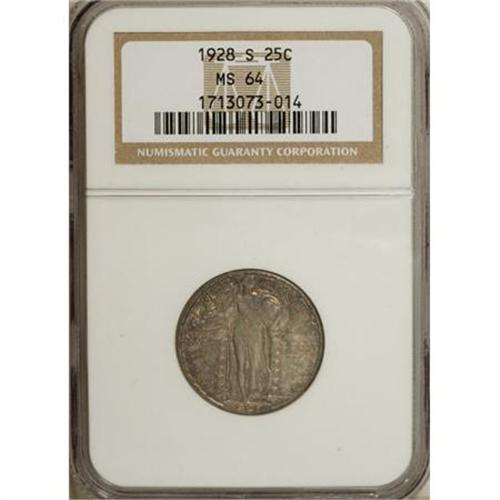 <B>1928-S 25C MS64 NGC.</B></I> NGC Census: (213/371). PCGS Population (359/475). Mintage: 2,644,000. Numismedia Wsl. Price for NGC/PCGS coin in MS64: $252. (#5770)<BR><BR><B>Coin Engraver:</B> Hermon A. MacNeil<BR><BR><b>Shipping:</b> Coins & Currency (<a target="_blank" href="http://www.heritageauctions.com/common/shipping.php">view shipping information</a>\)