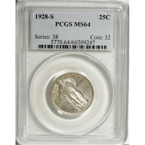 <B>1928-S 25C MS64 PCGS.</B></I> PCGS Population (358/478). NGC Census: (213/372). Mintage: 2,644,000. Numismedia Wsl. Price for NGC/PCGS coin in MS64: $252. (#5770)<BR><BR><B>Coin Engraver:</B> Hermon A. MacNeil<BR><BR><b>Shipping:</b> Coins & Currency (<a target="_blank" href="http://www.heritageauctions.com/common/shipping.php">view shipping information</a>)