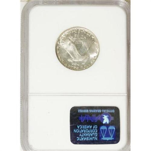 <B>1928-S 25C MS65 Full Head NGC.</B></I> Large S. Delicate freckles of auburn and aqua ensure the originality of this lustrous Standing Liberty quarter. Boldly struck save for the usual two shield rivets near the waist. A concealed horizontal mark on the base of the front wing barely merits mention.<BR><BR><B>Coin Engraver:</B> Hermon A. MacNeil<BR><BR><b>Shipping:</b> Coins & Currency (<a target="_blank" href="http://www.heritageauctions.com/common/shipping.php">view shipping information</a>)