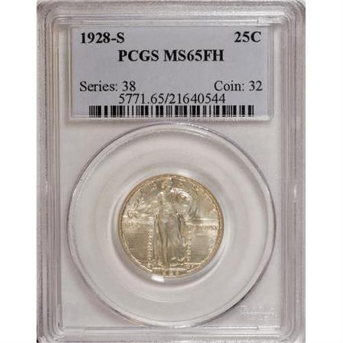 <B>1928-S 25C MS65 Full Head PCGS.</B></I> This is an especially fine Gem example of the '28-S, with impressive striking definition and outstanding surface preservation. There are almost no mark or blemishes whatsoever, on either side. Scarce with Full Head details at this grade level. <BR><BR><B>Coin Engraver:</B> Hermon A. MacNeil<BR><BR><b>Shipping:</b> Coins & Currency (<a target="_blank" href="http://www.heritageauctions.com/common/shipping.php">view shipping information</a>)