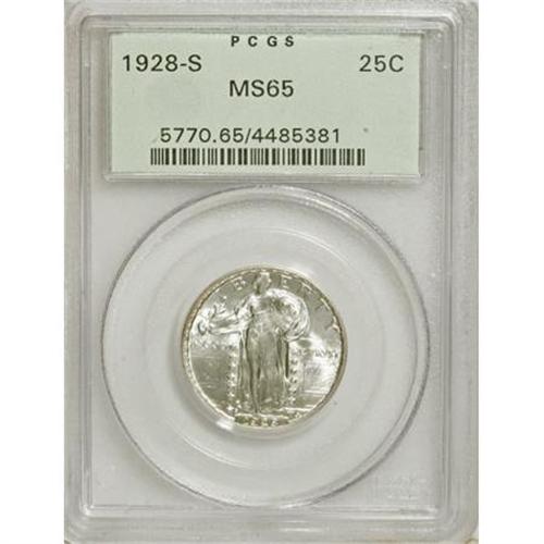 <B>1928-S 25C MS65 PCGS.</B></I> PCGS Population (373/104). NGC Census: (256/118). Mintage: 2,644,000. Numismedia Wsl. Price for NGC/PCGS coin in MS65: $440. (#5770)<BR><BR><B>Coin Engraver:</B> Hermon A. MacNeil<BR><BR><b>Shipping:</b> Coins & Currency (<a target="_blank" href="http://www.heritageauctions.com/common/shipping.php">view shipping information</a>)