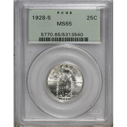 <B>1928-S 25C MS65 PCGS.</B></I> PCGS Population (375/104). NGC Census: (258/119). Mintage: 2,644,000. Numismedia Wsl. Price for NGC/PCGS coin in MS65: $460. (#5770)<BR><BR><B>Coin Engraver:</B> Hermon A. MacNeil<BR><BR><b>Shipping:</b> Coins & Currency (<a target="_blank" href="http://www.heritageauctions.com/common/shipping.php">view shipping information</a>)