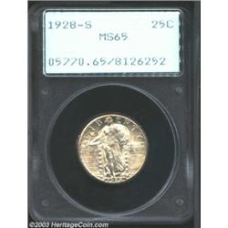 <TABLE cellSpacing=0 cellPadding=0 width="100%" bgColor=#000000 border=0><TBODY><TR><TD width="100%"><TABLE cellSpacing=1 cellPadding=3 width="100%" border=0><TBODY><TR><TD width="100%" bgColor=#79735c><FONT face=arial color=#ffffff size=3><B>Description</B> </FONT></TD></TR><TR><TD width="100%" bgColor=#ffffff><FONT face=arial size=2><B>1928-S 25C MS65 PCGS.</B></I> Slightly soft on the eagle, and on Liberty's head, but reasonably sharp elsewhere, this attractive Gem is lustrous and lightly toned. Only one or two tiny contact marks are visible on each side. </FONT></TD></TR></TBODY></TABLE></TD></TR></TBODY></TABLE><BR><A name=PricesRealized></A><TABLE cellSpacing=0 cellPadding=0 width="100%" bgColor=#000000 border=0><TBODY><TR><TD width="100%"><TABLE cellSpacing=1 cellPadding=3 width="100%" border=0><TBODY><TR><TD width="100%" bgColor=#79735c><A name=PR><FONT face=arial color=#ffffff size=3><B>Previous Prices from Heritage Auctions</B> </FONT></A></TD></TR><TR><TD bgColor=#f6f6ed><TABLE cellSpacing=0 cellPadding=0 width="100%" border=1><TBODY><TR><TD align=middle width="33%"><B>Date</B></TD><TD align=middle width="33%"><B>Service</B></TD><TD align=middle width="33%"><B>Price</B></TD></TR><TR bgColor=whitesmoke><TD width="33%"><B>06/04/1993</B></TD><TD width="33%">PCGS</TD><TD width="33%">$385.00</TD></TR><TR bgColor=whitesmoke><TD width="33%"><B>05/22/1993</B></TD><TD width="33%">PCGS</TD><TD width="33%">$451.00</TD></TR><TR bgColor=whitesmoke><TD width="33%"><B>05/31/2003</B></TD><TD width="33%">PCGS</TD><TD width="33%">$402.50</TD></TR><TR bgColor=whitesmoke><TD width="33%"><B>01/11/2003</B></TD><TD width="33%">PCGS</TD><TD width="33%">$488.75</TD></TR><TR bgColor=whitesmoke><TD width="33%"><B>04/28/2002</B></TD><TD width="33%">NGC</TD><TD width="33%">$322.00</TD></TR><TR bgColor=whitesmoke><TD width="33%"><B>02/24/2002</B></TD><TD width="33%">NGC</TD><TD width="33%">$333.50</TD></TR><TR bgColor=whitesmoke><TD width="33%"><B>11/15/2001</B></TD><TD width="33%">NGC</TD><TD width="33%">$316.25</TD></TR><TR bgColor=whitesmoke><TD width="33%"><B>10/02/2001</B></TD><TD width="33%">NGC</TD><TD width="33%">$340.00</TD></TR><TR bgColor=whitesmoke><TD width="33%"><B>04/05/2001</B></TD><TD width="33%">NGC</TD><TD width="33%">$345.00</TD></TR><TR bgColor=whitesmoke><TD width="33%"><B>01/05/2001</B></TD><TD width="33%">NGC</TD><TD width="33%">$345.00</TD></TR><TR bgColor=whitesmoke><TD width="33%"><B>05/02/1997</B></TD><TD width="33%">NGC</TD><TD width="33%">$253.00</TD></TR><TR bgColor=whitesmoke><TD width="33%"><B>08/07/2000</B></TD><TD width="33%">NGC</TD><TD width="33%">$460.00</TD></TR><TR bgColor=whitesmoke><TD width="33%"><B>02/02/1996</B></TD><TD width="33%">NGC</TD><TD width="33%">$264.00</TD></TR><TR bgColor=whitesmoke><TD width="33%"><B>09/26/1998</B></TD><TD width="33%">NGC</TD><TD width="33%">$345.00</TD></TR><TR bgColor=whitesmoke><TD width="33%"><B>11/23/2002</B></TD><TD width="33%">PCGS</TD><TD width="33%">$333.50</TD></TR><TR bgColor=whitesmoke><TD width="33%"><B>07/30/2002</B></TD><TD width="33%">PCGS</TD><TD width="33%">$356.50</TD></TR><TR bgColor=whitesmoke><TD width="33%"><B>08/19/1995</B></TD><TD width="33%">ANACS</TD><TD width="33%">$242.00</TD></TR><TR bgColor=whitesmoke><TD width="33%"><B>08/06/2003</B></TD><TD width="33%">PCGS</TD><TD width="33%">$391.00</TD></TR><TR bgColor=whitesmoke><TD width="33%"><B>03/01/2003</B></TD><TD width="33%">PCGS</TD><TD width="33%">$431.25</TD></TR><TR bgColor=whitesmoke><TD width="33%"><B>01/28/2003</B></TD><TD width="33%">NGC</TD><TD width="33%">$345.00</TD></TR><TR bgColor=whitesmoke><TD width="33%"><B>01/28/2003</B></TD><TD width="33%">NGC</TD><TD width="33%">$333.50</TD></TR><TR bgColor=whitesmoke><TD width="33%"><B>05/03/2003</B></TD><TD width="33%">NGC</TD><TD width="33%">$322.00</TD></TR></TBODY></TABLE></TD></TR><TR><TD bgColor=#ffffff><FONT face=arial size=1 ?>PLEASE NOTE: All prices realized reflect the final hammer price PLUS the buyer's premium in auctions that charge a buyer's premium. Each item has a notation at the top of the listing indicating whether that lot included a buyer's premium. Example: A item that sells with a final hammer price of $100 and a 20% buyer's premium will display with a price realized of $120. All information listed is intended to be as accurate as possible, but errors are possible. Please use this guide carefully and inform us of any inaccuracies. </FONT></TD></TR></TBODY></TABLE></TD></TR></TBODY></TABLE><BR><TABLE cellSpacing=0 cellPadding=0 width="100%" bgColor=#000000 border=0><TBODY><TR><TD width="100%"><TABLE cellSpacing=1 cellPadding=3 width="100%" border=0><TBODY><TR><TD width="100%" bgColor=#79735c colSpan=6><FONT face=arial color=#ffffff size=3><B>Price Guide*</B> </FONT></TD></TR><TR bgColor=#f6f6ed><TD align=middle><B>Grade</B> </TD><TD align=middle><B>Coin World<BR>(Trends)</B> </TD><TD align=middle><B>Numismedia<BR>Retail</B> </TD><TD align=middle><B>Numismedia<BR>Wholesale</B> </TD><TD align=middle><B>Coin<BR>Universe</B> </TD><TD align=middle><B>Heritage<BR>Value Index</B> </TD></TR><TR bgColor=#ffffff><TD align=middle>64</TD><TD align=right>$250.00</TD><TD align=right>$255.00</TD><TD align=right>$204.00</TD><TD align=right>$275.00</TD><TD align=right>$180.25</TD></TR><TR style="FONT-WEIGHT: bold" bgColor=#cccfdd><TD align=middle>65</TD><TD align=right>$600.00</TD><TD align=right>$469.00</TD><TD align=right>$375.00</TD><TD align=right>$475.00</TD><TD align=right>$366.38</TD></TR><TR bgColor=#ffffff><TD align=middle>66</TD><TD align=right>$950.00</TD><TD align=right>$810.00</TD><TD align=right>$650.00</TD><TD align=right>$775.00</TD><TD align=right>$577.50</TD></TR><TR bgColor=#ffffff><TD colSpan=6><FONT size=1>*All information listed is intended to be as accurate as possible, but errors are possible. No item may be returned or refused based on this information which is provided as a service to our customers. You should contact each pricing source directly to determine the accuracy o