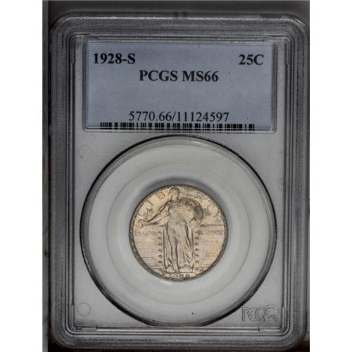 1928-S 25C MS66 PCGS. Lustrous surfaces are bathed in 1928-S[25C] MS66 PCGS.