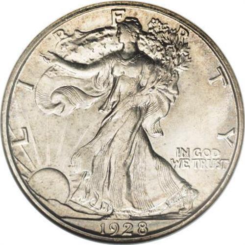 <B>1928-S 50C MS63 NGC.</B></I> A satiny Mint State piece with ivory surfaces and excellent luster. Both sides have wisps of faint blue and iridescent toning. This appears to be Breen's "Large Mintmark" variety described as a bold S with sharp serifs, cataloged by him as number 5152 in his Complete Encyclopedia.<BR><BR><B>Coin Engraver:</B> Adolph A. Weinman<BR><BR><b>Shipping:</b> Coins & Currency (<a target="_blank" href="http://www.heritageauctions.com/common/shipping.php">view shipping information</a>)