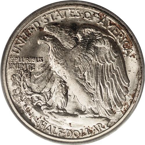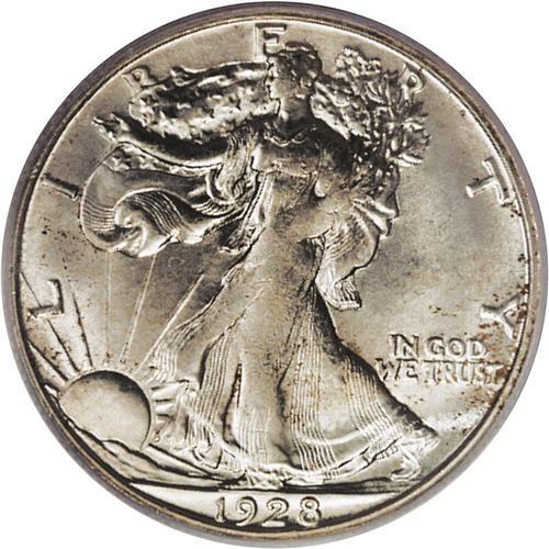 <B>1928-S<50C> MS63 PCGS.</B></I> Breen-5151. Small S mintmark. A fully lustrous and remarkable unabraded better date half dollar. Freckles of tan congregate along the borders. The centers are softly defined, characteristic of this challenging issue. A scant 1,940,000 pieces were struck. San Francisco was the only producer of Walking Liberty halves between 1922 and 1928.