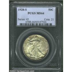 <table><tr><td><TABLE cellSpacing=0 cellPadding=0 width="100%" bgColor=#000000 border=0><TBODY> <TR><TD width="100%"><TABLE cellSpacing=1 cellPadding=3 width="100%" border=0><TBODY><TR><TD width="100%" bgColor=#79735c><FONT face=arial color=#ffffff size=3><B>Description</B> </FONT></TD></TR><TR><TD width="100%" bgColor=#ffffff><FONT face=arial size=2><B>1928-S 50C MS64 PCGS.</B></I> A scarce issue in Mint State, and one of the five most difficult strike rarities in the series, the '28-S is almost always found weakly struck in the centers This near-Gem is not an exception to the rule, and is very softly impressed in the centers, especially on the obverse. Speckled toning around the rims appears in variegated golden-brown, olive, and russet colors. There are multiple wispy die cracks (as struck) on the reverse, several on the upper half, and one near the lower left rim. The luster is satiny and slightly subdued, but the surfaces are impressively preserved, with a few trivial blemishes on the lower obverse and a seemingly mark-free reverse. Population: 106 in 64, 38 finer (9/03). </FONT></TD></TR></TBODY></TABLE></TD></TR></TBODY></TABLE><BR><A name=PricesRealized></A><TABLE cellSpacing=0 cellPadding=0 width="100%" bgColor=#000000 border=0><TBODY><TR><TD width="100%"><TABLE cellSpacing=1 cellPadding=3 width="100%" border=0><TBODY><TR><TD width="100%" bgColor=#79735c><A name=PR><FONT face=arial color=#ffffff size=3><B>Previous Prices from Heritage Auctions</B> </FONT></A></TD></TR><TR><TD bgColor=#f6f6ed><TABLE cellSpacing=0 cellPadding=0 width="100%" border=1><TBODY><TR><TD align=middle width="33%"><B>Date</B></TD><TD align=middle width="33%"><B>Service</B></TD><TD align=middle width="33%"><B>Price</B></TD></TR><TR bgColor=whitesmoke><TD width="33%"><B>03/01/2003</B></TD><TD width="33%">PCGS</TD><TD width="33%">$3,220.00</TD></TR><TR bgColor=whitesmoke><TD width="33%"><B>11/23/2002</B></TD><TD width="33%">PCGS</TD><TD width="33%">$3,220.00</TD></TR><TR bgColor=whitesmoke><TD width="33%"><B>01/12/2002</B></TD><TD width="33%">PCGS</TD><TD width="33%">$2,530.00</TD></TR><TR bgColor=whitesmoke><TD width="33%"><B>02/23/2001</B></TD><TD width="33%">PCGS</TD><TD width="33%">$2,328.75</TD></TR><TR bgColor=whitesmoke><TD width="33%"><B>08/17/1996</B></TD><TD width="33%">NGC</TD><TD width="33%">$1,595.00</TD></TR><TR bgColor=whitesmoke><TD width="33%"><B>02/02/1996</B></TD><TD width="33%">PCGS</TD><TD width="33%">$2,200.00</TD></TR><TR bgColor=whitesmoke><TD width="33%"><B>07/30/1994</B></TD><TD width="33%">PCGS</TD><TD width="33%">$2,365.00</TD></TR><TR bgColor=whitesmoke><TD width="33%"><B>10/22/1993</B></TD><TD width="33%">PCGS</TD><TD width="33%">$2,420.00</TD></TR><TR bgColor=whitesmoke><TD width="33%"><B>05/01/1997</B></TD><TD width="33%">NGC</TD><TD width="33%">$1,760.00</TD></TR><TR bgColor=whitesmoke><TD width="33%"><B>09/01/1997</B></TD><TD width="33%">PCGS</TD><TD width="33%">$2,970.00</TD></TR><TR bgColor=whitesmoke><TD width="33%"><B>03/01/2000</B></TD><TD width="33%">PCGS</TD><TD width="33%">$2,070.00</TD></TR><TR bgColor=whitesmoke><TD width="33%"><B>11/01/1995</B></TD><TD width="33%">PCGS</TD><TD width="33%">$2,310.00</TD></TR><TR bgColor=whitesmoke><TD width="33%"><B>08/01/1999</B></TD><TD width="33%">PCGS</TD><TD width="33%">$2,530.00</TD></TR></TBODY></TABLE></TD></TR><TR><TD bgColor=#ffffff><FONT face=arial size=1 ?>PLEASE NOTE: All prices realized reflect the final hammer price PLUS the buyer's premium in auctions that charge a buyer's premium. Each item has a notation at the top of the listing indicating whether that lot included a buyer's premium. Example: A item that sells with a final hammer price of $100 and a 20% buyer's premium will display with a price realized of $120. All information listed is intended to be as accurate as possible, but errors are possible. Please use this guide carefully and inform us of any inaccuracies. </FONT></TD></TR></TBODY></TABLE></TD></TR></TBODY></TABLE><BR><TABLE cellSpacing=0 cellPadding=0 width="100%" bgColor=#000000 border=0><TBODY><TR><TD width="100%"><TABLE cellSpacing=1 cellPadding=3 width="100%" border=0><TBODY><TR><TD width="100%" bgColor=#79735c colSpan=6><FONT face=arial color=#ffffff size=3><B>Price Guide*</B> </FONT></TD></TR><TR bgColor=#f6f6ed><TD align=middle><B>Grade</B> </TD><TD align=middle><B>Coin World<BR>(Trends)</B> </TD><TD align=middle><B>Numismedia<BR>Retail</B> </TD><TD align=middle><B>Numismedia<BR>Wholesale</B> </TD><TD align=middle><B>Coin<BR>Universe</B> </TD><TD align=middle><B>Heritage<BR>Value Index</B> </TD></TR><TR bgColor=#ffffff><TD align=middle>63</TD><TD align=right>$2,000.00</TD><TD align=right>---</TD><TD align=right>$1,485.00</TD><TD align=right>$2,000.00</TD><TD align=right>$1,457.50</TD></TR><TR style="FONT-WEIGHT: bold" bgColor=#cccfdd><TD align=middle>64</TD><TD align=right>$3,500.00</TD><TD align=right>---</TD><TD align=right>$2,425.00</TD><TD align=right>$3,250.00</TD><TD align=right>$2,537.50</TD></TR><TR bgColor=#ffffff><TD align=middle>65</TD><TD align=right>$9,000.00</TD><TD align=right>---</TD><TD align=right>$6,425.00</TD><TD align=right>$11,000.00</TD><TD align=right>$6,510.63</TD></TR><TR bgColor=#ffffff><TD colSpan=6><FONT size=1>*All information listed is intended to be as accurate as possible, but errors are possible. No item may be returned or refused based on this information which is provided as a service to our customers. You should contact each pricing source directly to determine the accuracy of this information. </FONT></TD></TR></TBODY></TABLE></TD></TR></TBODY></TABLE><BR><TABLE cellSpacing=0 cellPadding=0 width="100%" bgColor=#000000 border=0><TBODY><TR><TD width="100%"><TABLE cellSpacing=1 cellPadding=3 width="100%" border=0><TBODY><TR><TD width="100%" bgColor=#79735c><FONT face=arial color=#ffffff size=3><B>Population Guide</B> </FONT></TD></TR><TR bgColor=#ffffff><TD align=middle><!-- Begin Output of Population Grid--><TABLE cellSpacing=0 cellPadding=0 width="100%" borde