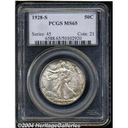 <B>1928-S<50C> MS65 PCGS.</B></I> Superb mint luster overall, some mottled russet color has gathered over each side to add to the coin's fully original appearance. A few scattered abrasions are confined to the obverse, but these are nearly obscured by the patina. Slightly above average and a nice looking example of this scarcer issue. <BR><BR><B>Important notice:</B> Heritage usually auctions material at the rate of 200-250 lots per hour. On some occasions eBay Live bid software or the Internet may not be able to keep up with the pace of the auction. We recommend placing a realistic absentee bid now as insurance to avoid disappointment. Occasionally the auctioneer may eliminate or reject an eBay Live bid, and the auctioneer may also reopen a lot after the close of the eBay live bidding (usually because we missed an audience bid), and may reject your bid even if it shows you as the winning bidder. By bidding via eBay Live, you agree that Heritage may award the lot to another bidder at its sole discretion under the circumstances described above or any other reasonable circumstances. Since eBay bids are not shown to us until we open the lot on the floor, we treat those bids just like floor bids. In most cases the floor responds before the eBay bid is presented to us, due to Internet lag time, so for consistency we have made it a policy that floor bids are always considered first over tie eBay live bids. Also please note that all Heritage lots purchased through eBay Live carry a 20% Buyer's Premium. Please make sure you read the Terms and Conditions before you bid. </span></font></tr></table></td></tr></table>