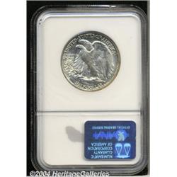 <B>1928-S<50C> MS66 NGC.</B></I> When offered in Mint State at all, the 1928-S (1.9 million pieces produced) is apt to grade no finer than MS63. An obviously important Gem, this coin is faintly toned on the obverse in dappled russet shades, the reverse is fully brilliant. Both sides are softly frosted in finish with solid luster quality and surface preservation for the assigned grade. The strike is not full over the highpoints, but, then again, there are virtually no '28-S Walkers that display this feature. Population: 4 in 66, 0 finer (4/04). <BR><BR><B>Important notice:</B> Heritage usually auctions material at the rate of 200-250 lots per hour. On some occasions eBay Live bid software or the Internet may not be able to keep up with the pace of the auction. We recommend placing a realistic absentee bid now as insurance to avoid disappointment. Occasionally the auctioneer may eliminate or reject an eBay Live bid, and the auctioneer may also reopen a lot after the close of the eBay live bidding (usually because we missed an audience bid), and may reject your bid even if it shows you as the winning bidder. By bidding via eBay Live, you agree that Heritage may award the lot to another bidder at its sole discretion under the circumstances described above or any other reasonable circumstances. Since eBay bids are not shown to us until we open the lot on the floor, we treat those bids just like floor bids. In most cases the floor responds before the eBay bid is presented to us, due to Internet lag time, so for consistency we have made it a policy that floor bids are always considered first over tie eBay live bids. Also please note that all Heritage lots purchased through eBay Live carry a 20% Buyer's Premium. Please make sure you read the Terms and Conditions before you bid.