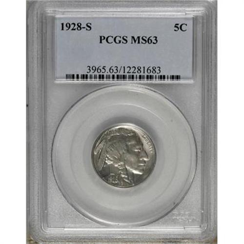 <B>1928-S 5C MS63 PCGS.</B></I> . PCGS Population (198/381). NGC Census: (123/242). Mintage: 6,936,000. Numismedia Wsl. Price for NGC/PCGS coin in MS63: $525. (#3965)<BR><BR><B>Coin Engraver:</B> James E. Fraser<BR><BR><b>Shipping:</b> Coins & Currency (<a target="_blank" href="http://www.heritageauctions.com/common/shipping.php">view shipping information</a>)