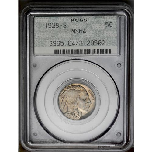 <B>1928-S<5C> MS64 PCGS.</B></I> A lustrous near-Gem with light gold color and pale gray highlights on the devices. Although not a rare date, this issue is hard to locate in higher grades.