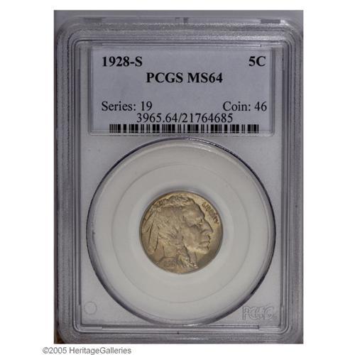 1928-S 5C MS64 PCGS. Olive-green and gunmetal-gray col 1928-S[5C] MS64 PCGS.